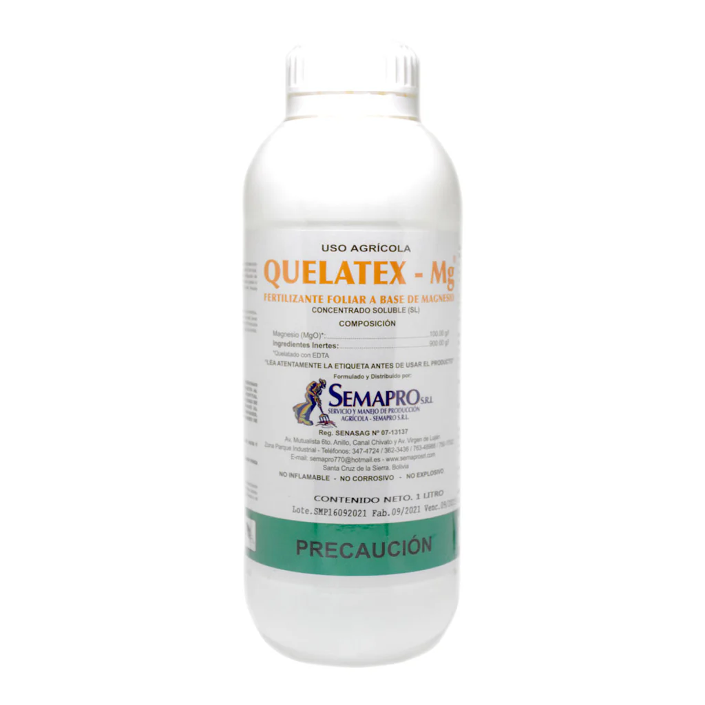 QUELATEX–Mg, es compatible con herbicidas, fungicidas y la mayoría de fertilizantes foliares, fitorreguladores en general, sólidos y líquidos y productos fitosanitarios en general.